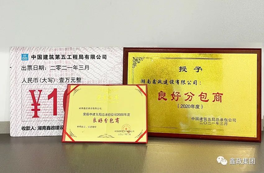 瀏覽次數:1542喜訊連連捷報傳。近日,在中建五局總承包公司2021年分包(供)商答謝會暨優秀分包(供)商表彰會上,集團下屬子公司湖南鑫政鋁業科技有限公司與湖南鑫政建設有限公司分別喜獲2020年度“優秀分供商”與“良好分包商”獎項。