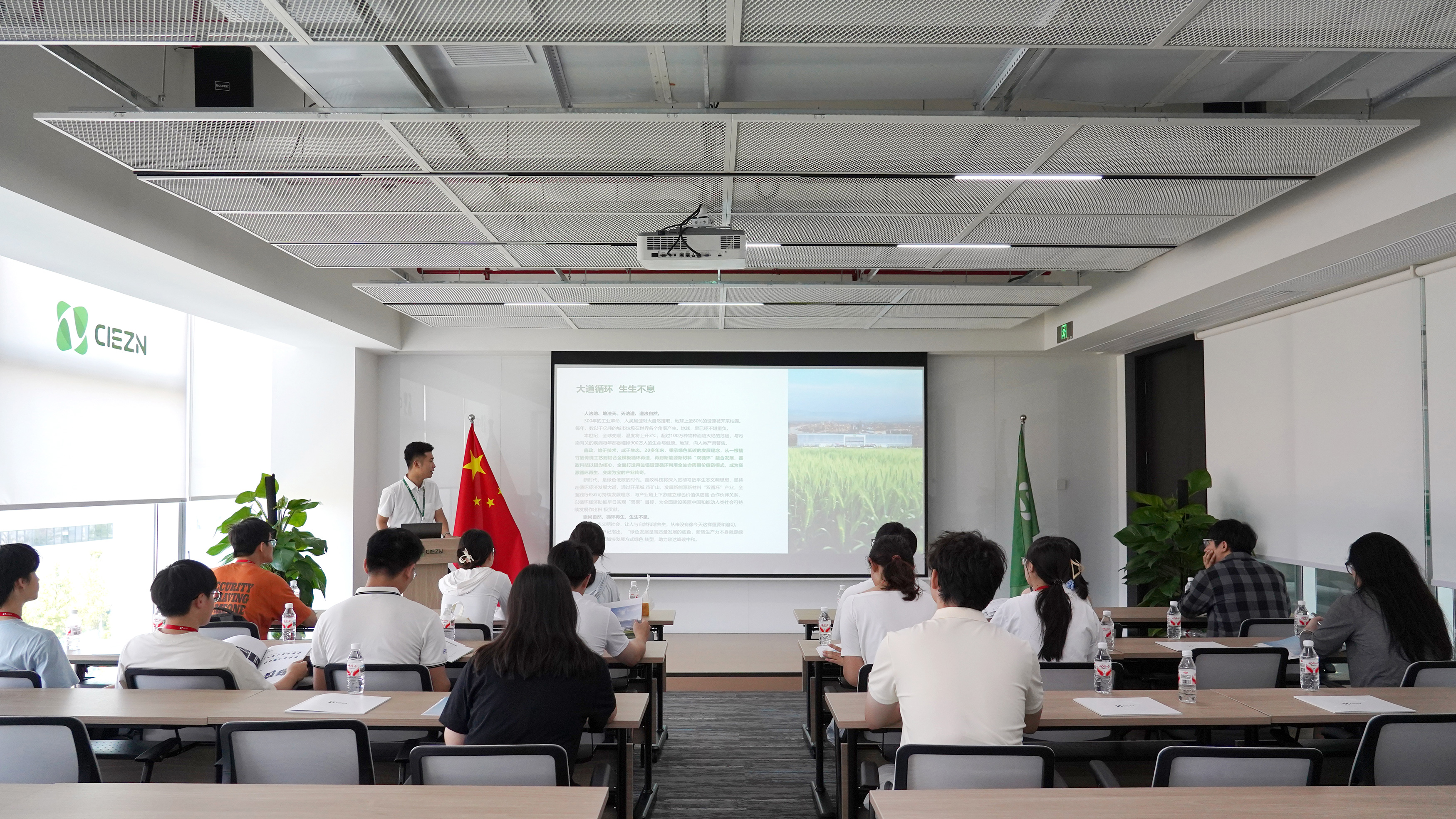 在數字展廳,學子們通過系統講解,深入了解鑫政的發展戰略、業務布局及技術創新實力。實地探訪花園式智慧園區,深入現代化數字車間一線。在這里,標準化的高效運營流程與前沿技術成果的規模化應用場景生動呈現,使課堂知識在真實的產業環境中獲得具象化詮釋。