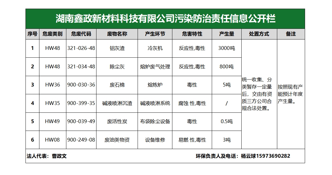 鑫政新材料科技有限公司污染防治責任信息公開